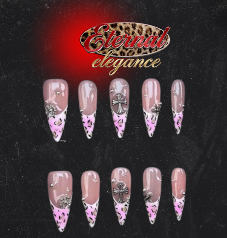 Soft nude base topped with bold, ultra‑girly accents for the perfect mix of classy and wild. Each tip is designed with a pink-and-black leopard print