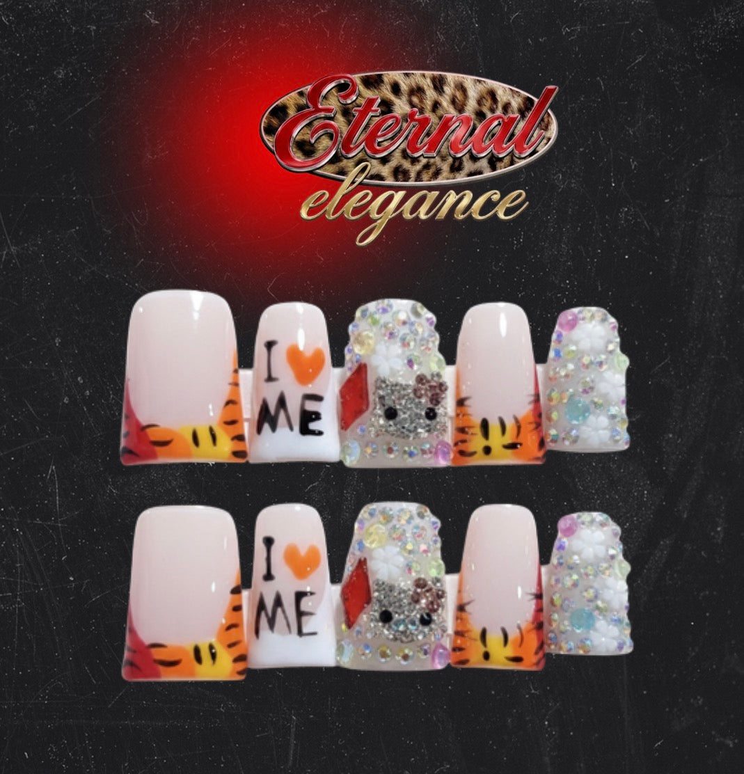 Unapologetic main character confidence. This set blends soft blush tones with bold tiger striped accents for a look that’s equal parts feral and fabulous.